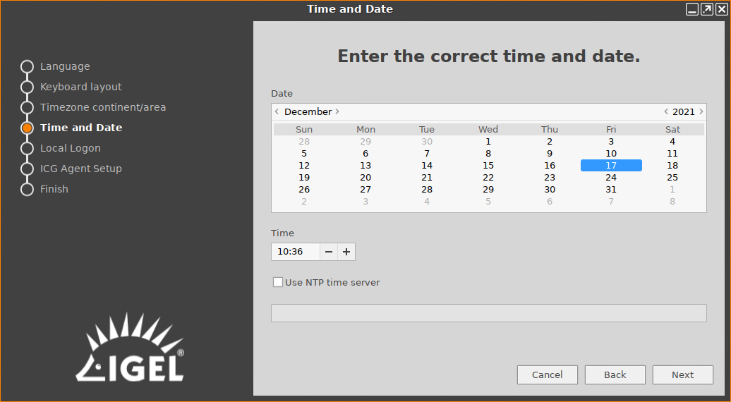 When you start an unconfigured device, you will be welcomed by the Setup Assistant for IGEL OS. This assistant takes you through the most important initial configuration steps.