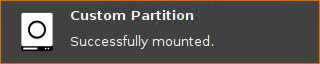 The Custom Partition is created on the device's mass storage, which is indicated by a message.