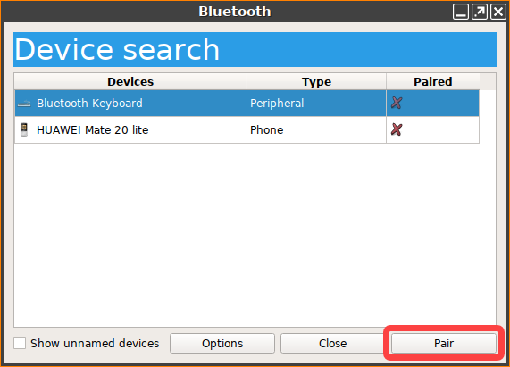 In the following example, we will connect a Bluetooth keyboard with Automatic PIN selection: