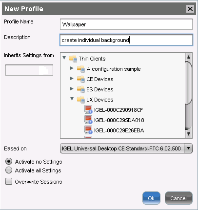 Create a profile that is based on the appropriate IGEL OS 10 version (10.05.800 or higher). Find a suitable name for the profile, e.g. "Firmware upgrade to IGEL OS 11".