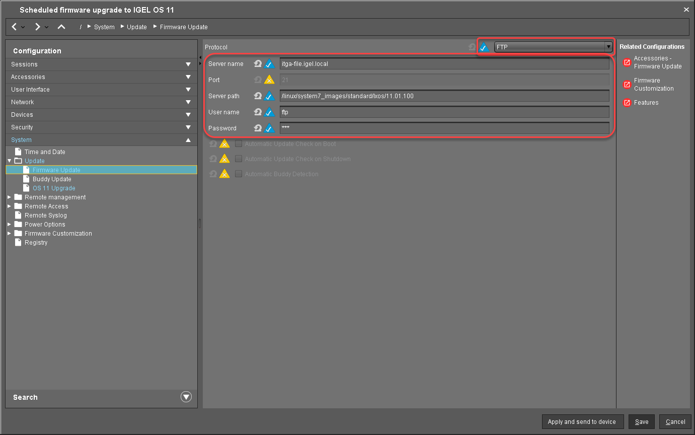 Select an update source for IGEL OS 11. For further information, see Firmware Update.