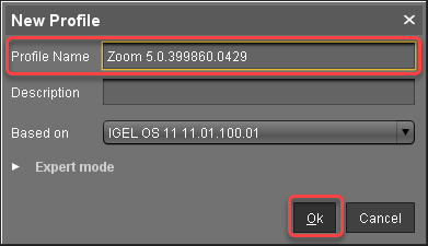 In the New Profile dialog, enter a Profile Name, e. g. "Zoom" followed by the version name, and click Ok.