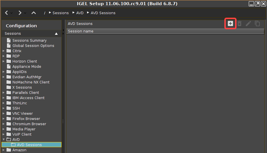 Open the Setup or the configuration dialog in the UMS and go to Sessions > AVD > AVD Sessions.