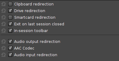 Go to Sessions > AVD > AVD Sessions > [Session name] > Options and enable or disable features and redirections according to your needs.