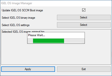 The IGEL OS image is ready for deployment (example:11.05.100.bin). - Start the IGEL OS Image Manager by clicking on the desktop icon.