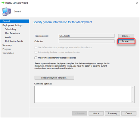 The Deploy Software Wizard opens. - Click the Browse button next to Collection:.