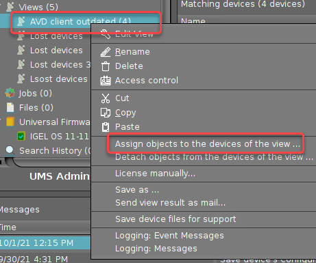 Go to the view you have created beforehand, open the context menu, and select Assign objects to the devices of the view....