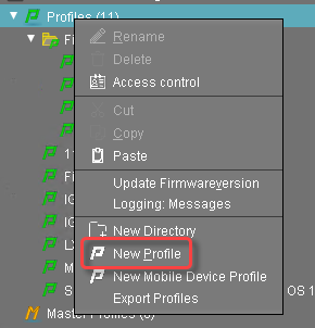 In the UMS structure tree, open the context menu for Profiles and select New Profile.