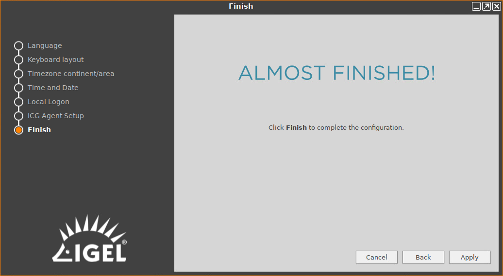 When you start an unconfigured device, you will be welcomed by the Setup Assistant for IGEL OS. This assistant takes you through the most important initial configuration steps.
