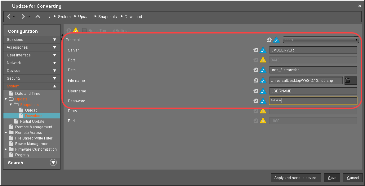 For IGEL WES 7 devices, you use UniversalDesktopWES-3.13.150.snp; for IGEL WES 7+ devices, you use UniversalDesktopWES7+-3.14.110.snp as the snapshot file. If you have both device types, perform the steps described below for each device type separately.