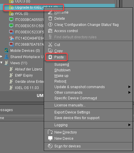 The parameter Automatic update check on boot makes the devices look for new firmware again. Although two Universal Firmware Updates are assigned to the devices, the UMS offers the IGEL OS 11 firmware, because the ID of the IGEL OS 11 firmware is higher than the ID of the IGEL OS 10 firmware.