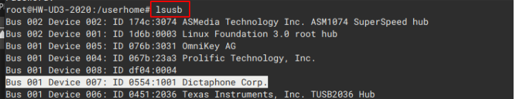 lsusbto display a list of devices and locate the device.Note the ID numbers separated by a colon ":"