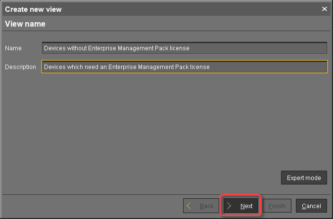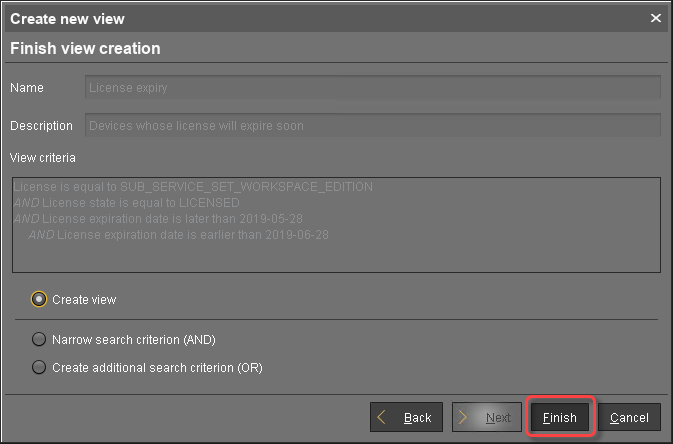 To find devices which require Workspace Edition (WE) or Endpoint Management (EMP) licenses, you can use a view with Device License as the search criterion.
