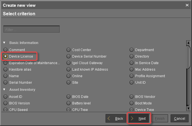 When you have created the view that serves your purpose, you can export the Unit IDs selected by the view; see Creating a Unit ID List for IGEL OS.