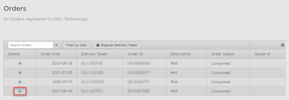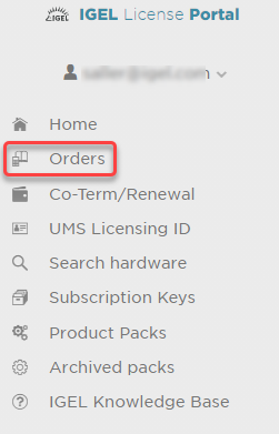 In the IGEL License Portal (ILP), go to Orders and open the details for the order that contains your Product Pack.