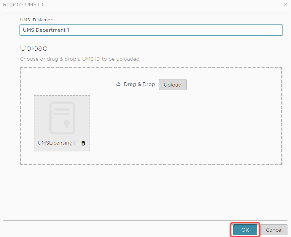 Upload the certificate file you have exported in the UMS (see ARCHIVE-How to Obtain the UMS ID ) and click OK.