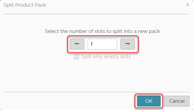 The Split product pack dialog opens.