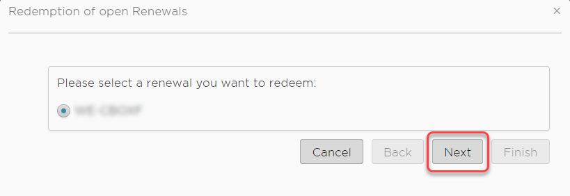 If none of your Product Packs reflects the number of licenses you want to renew, you need to split your licenses accordingly before redeeming the renewal.