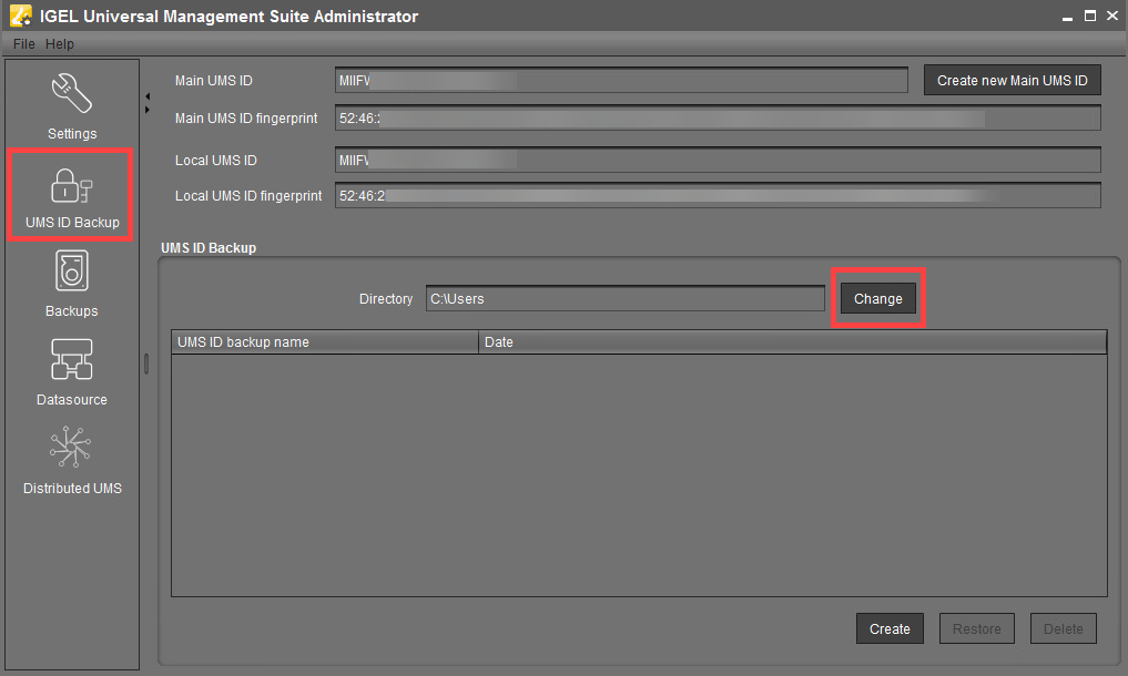 In the IGEL UMS Administrator, you can create a backup of the UMS ID (called "UMS Licensing ID" before UMS 12). For information on the UMS ID, see also UMS ID.