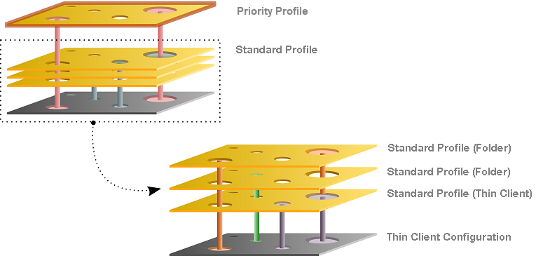 The following graphic shows that the priority profile setting overrides that of the standard profiles if the same parameter is pre-populated. Settings that are not double-populated are effective without restriction.