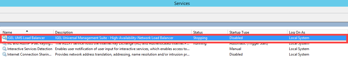 → Stop the load balancer manually and proceed with the update. For information regarding stopping the HA services, see IGEL UMS HA Services and Processes.