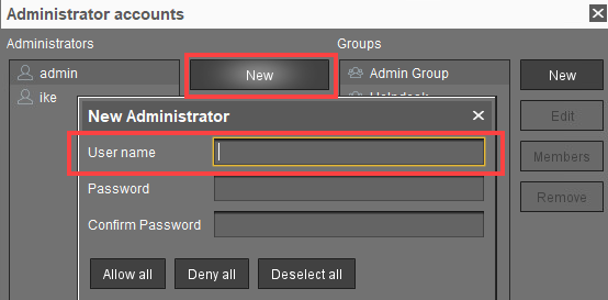 New: A new administrator or a new group will be created.