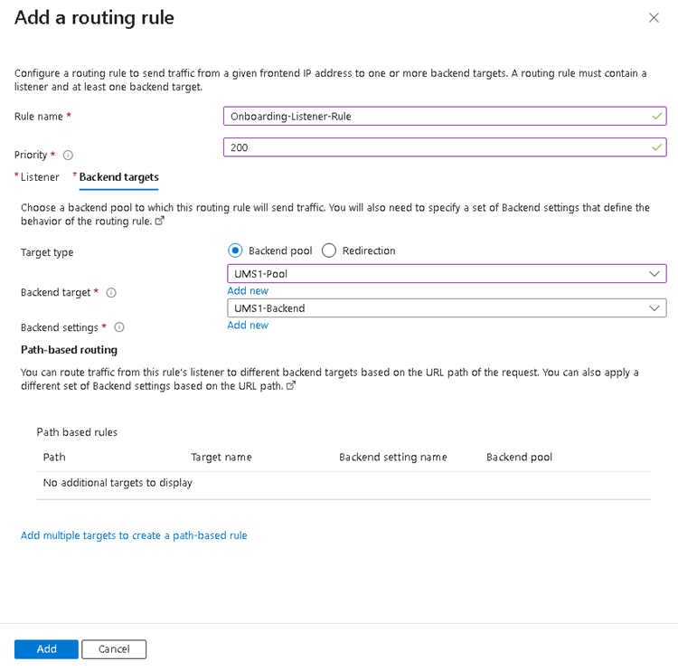 3. Add backend pool with UMS address. Add the UMS / ICG FQDN or IP.