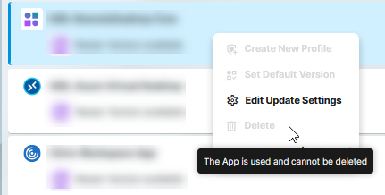 3 | Commands | Create New Profile: Creates a profile for the app selected in the app list. For more information on profile creation, see How to Create and Assign Profiles in the IGEL UMS Web App. Set Default Version: Defines which app version will be assigned to a device /device directory if no specific app version is selected during the app assignment or the creation of a profile configuring this app. See How to Set a Default Version of an App in the IGEL UMS. Edit Update Settings: Allows you to change update settings for the app selected in the app list. See Configuring Update Settings for Individual IGEL OS Apps. Delete: Deletes an app selected in the app list if this app is nowhere used. See How to Delete Apps in the IGEL UMS Web App. |
