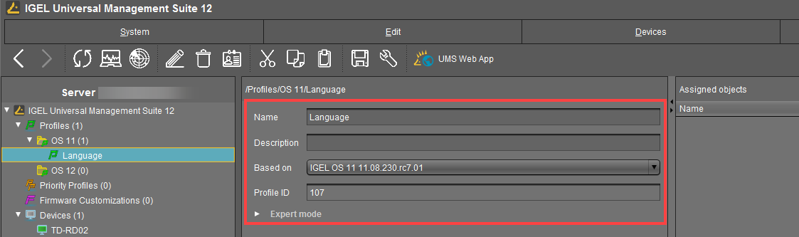 Profiles for IGEL OS 12 devices can only be created and changed in the UMS Web App. It is not possible to create/edit them in the UMS Console.