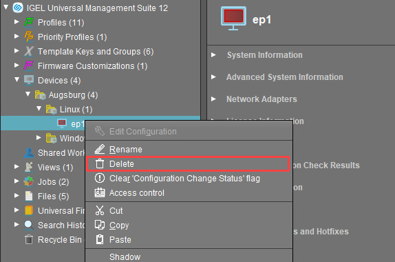 Recycle Bin - Deleting Objects in the IGEL UMS