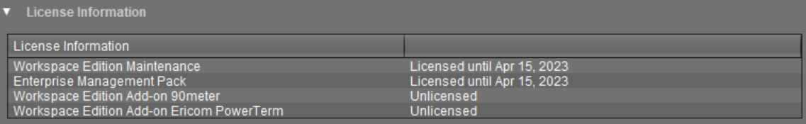 In this area, the licenses available for the device are listed.