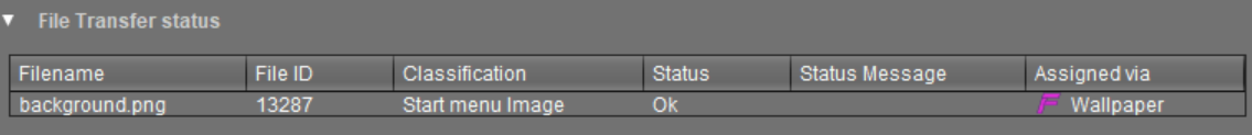 As of device firmware IGEL OS 10.05.100, the transfer status of assigned files is displayed here, regardless of whether they have been assigned directly or indirectly (via profiles or firmware customizations).