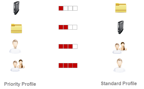 Priority profiles assigned to user groups have a higher priority than those assigned to individual users. These have higher priority than priority profiles assigned to device directories. Priority profiles assigned to an individual device have the lowest priority.