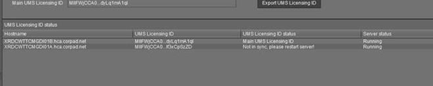 Devices are not able to register in the UMS. Licenses are applied correctly. 2 servers appear in sync and another one is out of sync.
