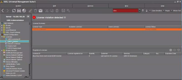 HA servers are out of sync preventing devices from registering in the UMS and throwing a license error.