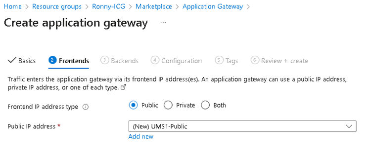 Add backend pool with UMS address. Add the UMS / ICG FQDN or IP.