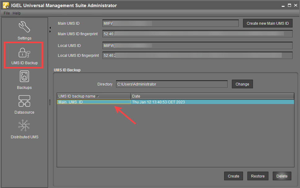 UMS ID Backup in the IGEL Administrator