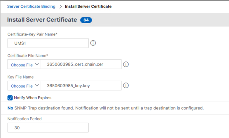 Under Certificate add a Server Certificate. For details on how to get the certificate chain and key, see Configure the UMS to Integrate Reverse Proxy with SSL Offloading.