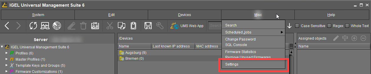 In the UMS Console, go to UMS Administration > Global Configuration > Misc Settings in IGEL UMS.