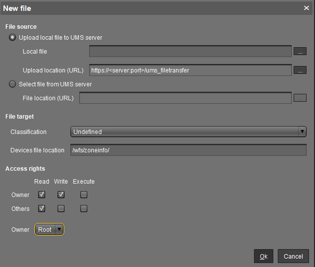 Select System > New > New File from the UMS Console menu bar or go to Files in the tree structure and select New File from the context menu.