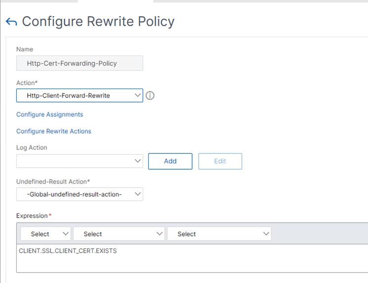 The policy expression checks if the Client Certificate is available.Add the Rewrite Policy to the Load Balancing Virtual Server under Policy Binding.