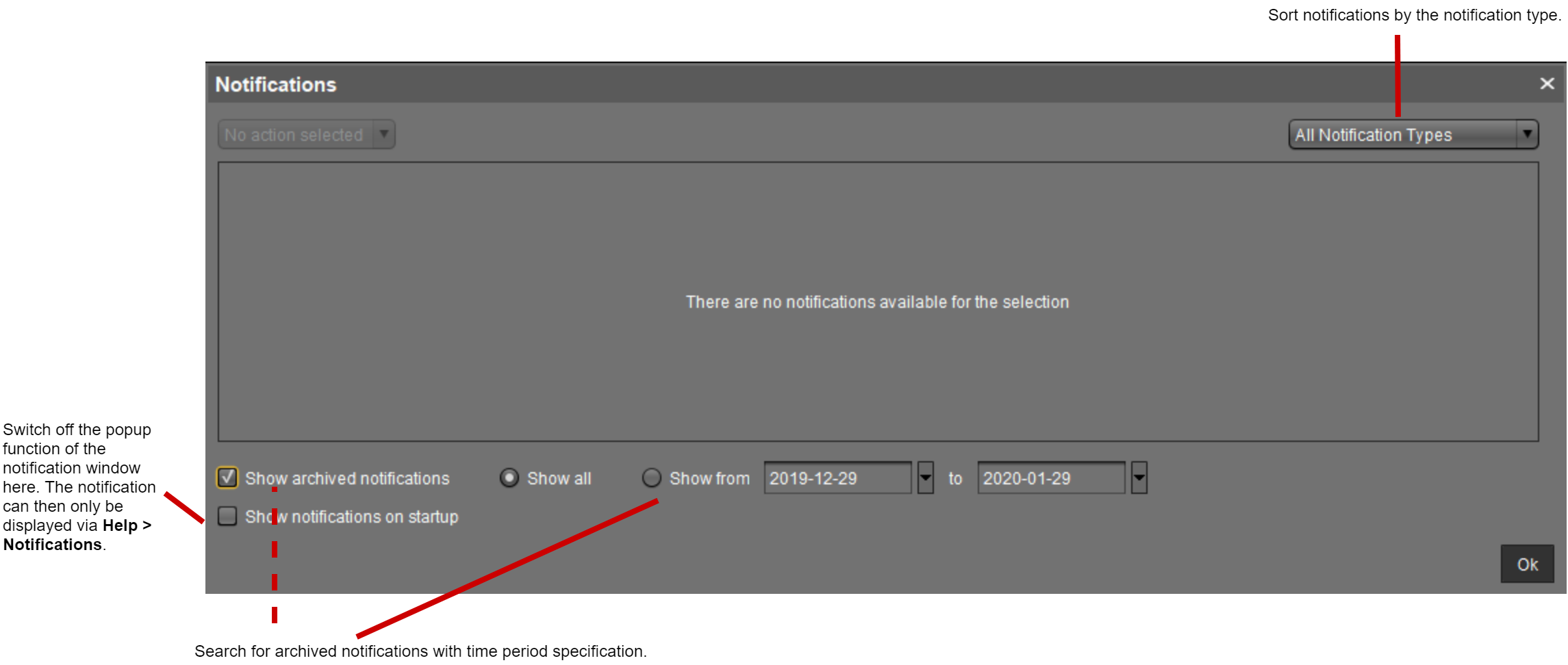 Basically, all users with read permission can see the notifications. The notifications are displayed after starting the UMS Console. When the dialog is closed, the notifications can still be viewed anytime under Help > Notifications.