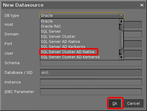 In the UMS Administrator, set up a new SQL Server Cluster AD Native type data source.